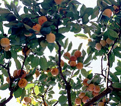 例によってカメラ向けると飛んでいってしまう。 今年は柿がたくさん実った。もう少しで食べごろ。 |