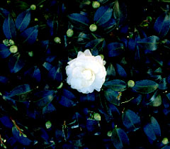 | 白サザンカが2つ開花。これからまた花が楽しめるか。